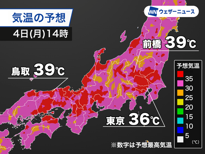 関東から近畿で猛暑継続