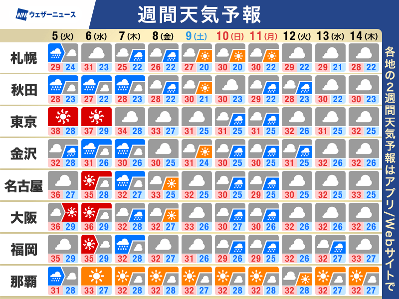 週間天気予報 週中頃以降は全国的に雨 猛暑落ち着くか