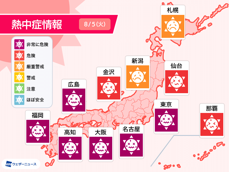 最高気温は35℃前後まで上がるところが多く、厳しい暑さが続きそうです。