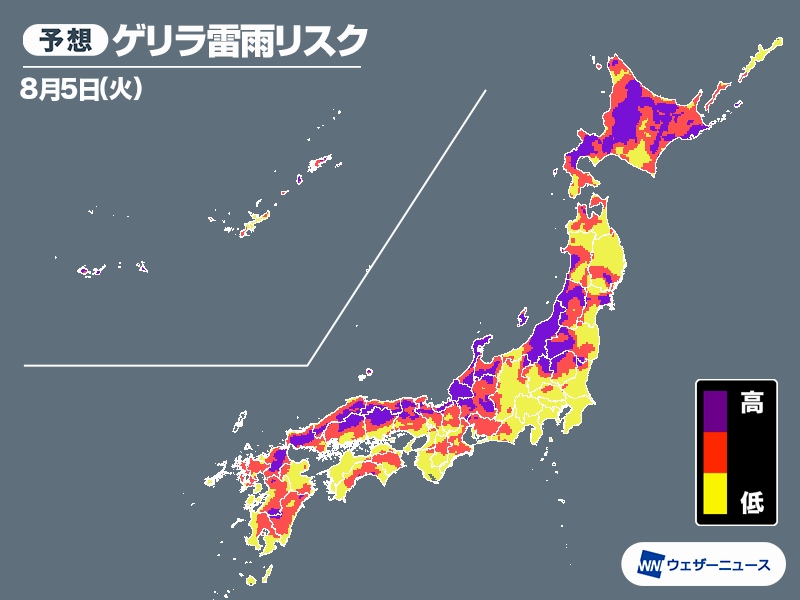 レーダー 「ゲリラ雷雨リスク」モードをアプリで見るレーダー 「ゲリラ雷雨リスク」モード