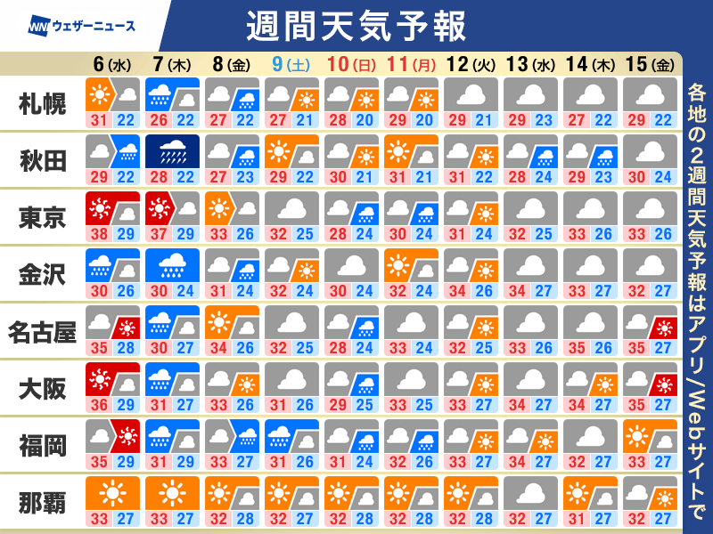週間天気予報 三連休にかけて前線停滞 猛暑は落ち着く
