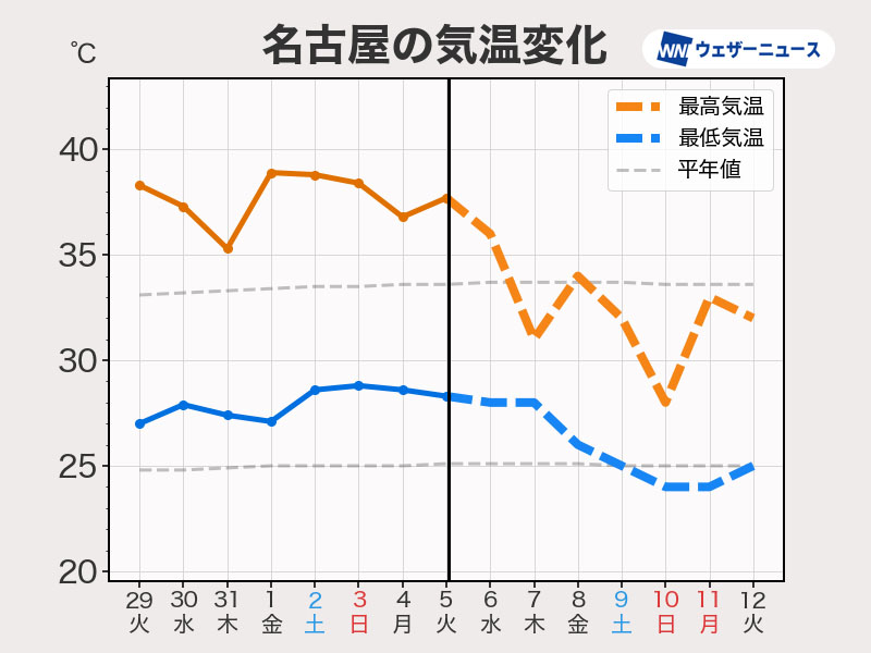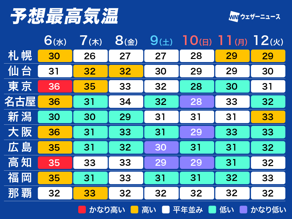 引き続き、こまめな水分補給や涼しい場所での休憩など熱中症対策を万全にしてお過ごしください。最低気温が高い傾向は続くため、夜間の暑さ対策も欠かせません。