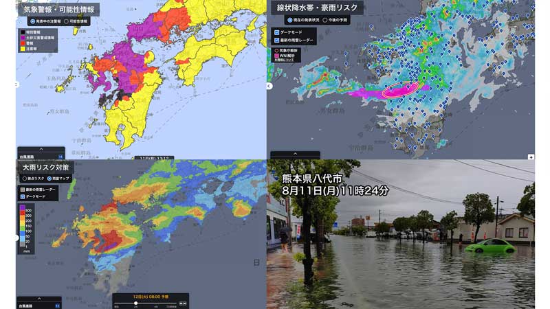 前週から、九州では広範囲で記録的な大雨になりました。熊本県では11日(月)0時20分に荒尾玉名地域に大雨特別警報が発表され、その後、5時25分に宇城八代地域、8時10分に天草地方にも特別警報が拡大されました。