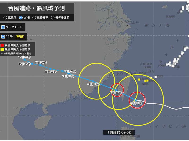 台風11号が先島諸島に接近