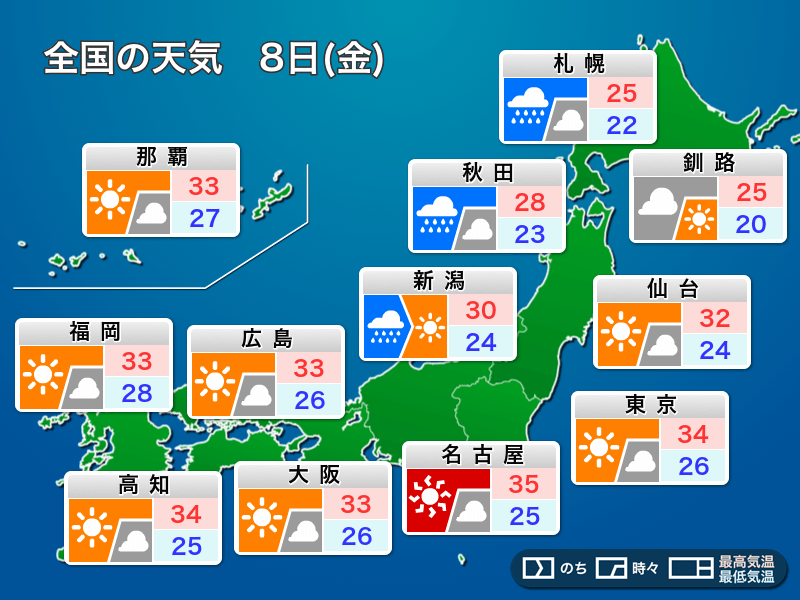 昼間は35℃近くまで気温が上がる予想です。万全な熱中症対策が欠かせません。