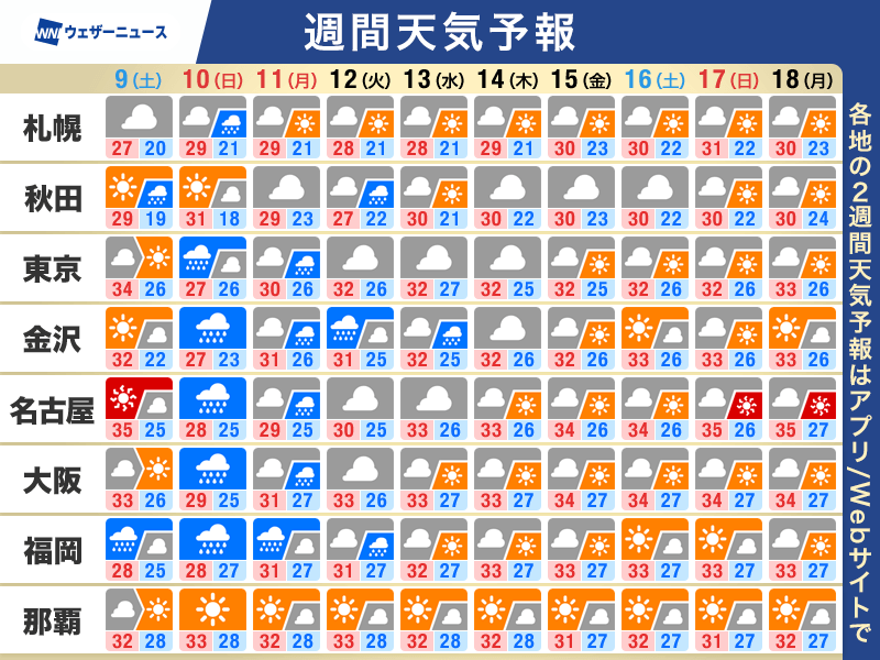 耐え難い暑さからは解放されるものの、多くの所で最高気温が30℃以上の真夏日は続く見通しです。また、日中はやや過ごしやすく感じても、東日本や西日本は、連日熱帯夜となる予想で、寝苦しさは続きそうです。
