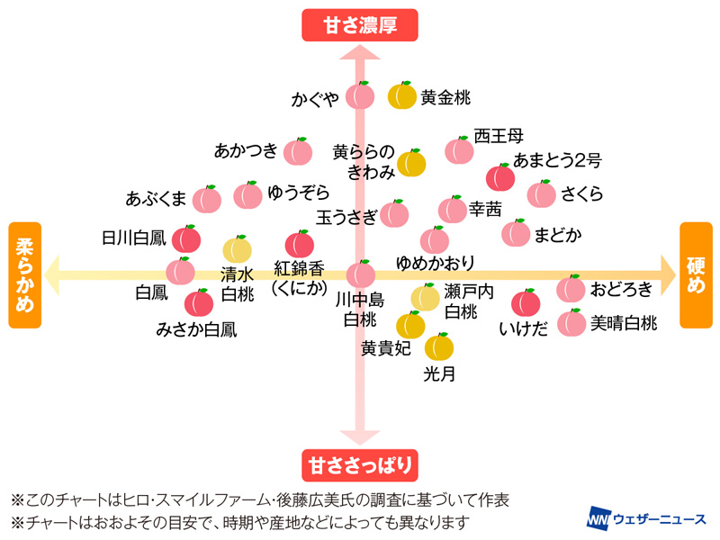 あなたは硬い派?柔らかい派? 好みの桃が一目でわかる“桃チャート”