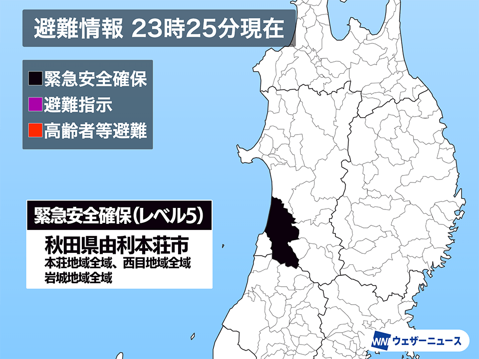 秋田県由利本荘市の一部に「緊急安全確保」発令 警戒レベル5 命を守る行動を