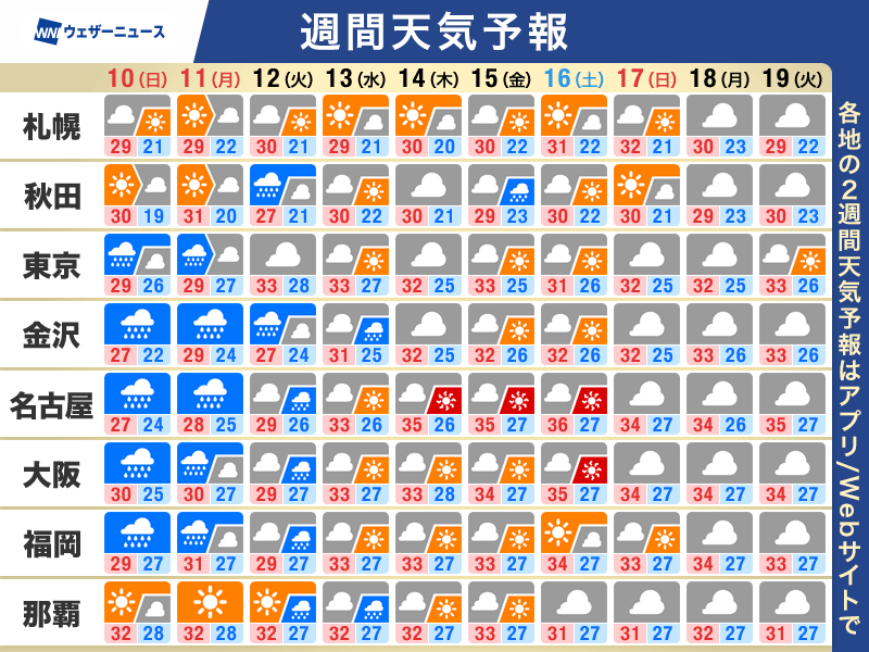 週間天気予報 連休明けも大雨に警戒を お盆休みは厳しい暑さ復活