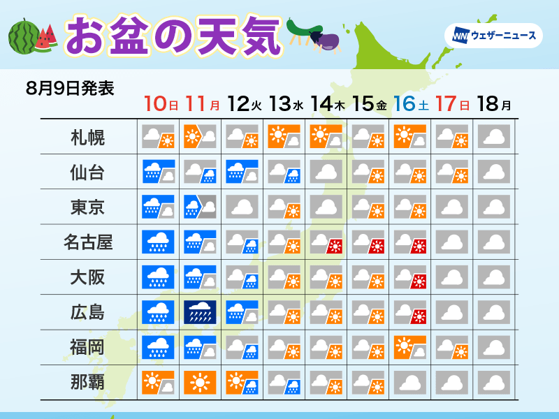 お盆休みの天気