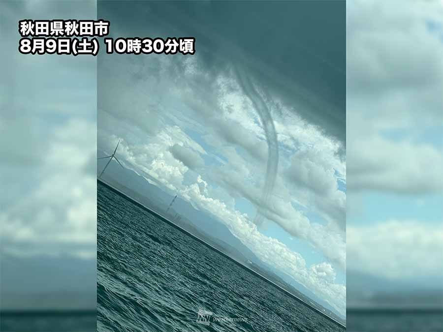 10時30分頃、秋田港付近で海上竜巻が発生か 突風に注意