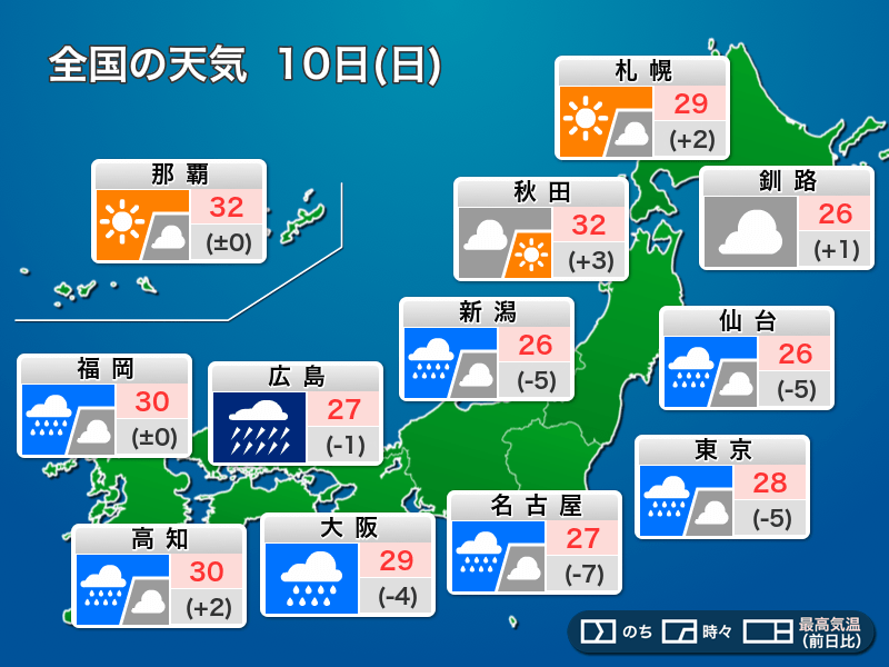 今日8月10日(日)の天気予報