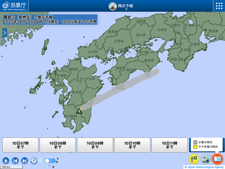 噴煙は四国方面に流れる予想(気象庁 降灰予報)