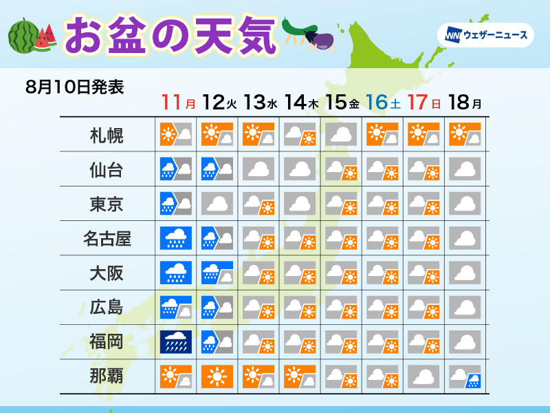 12日(火)頃まで大雨警戒 お盆の頃は天気回復し暑さ復活