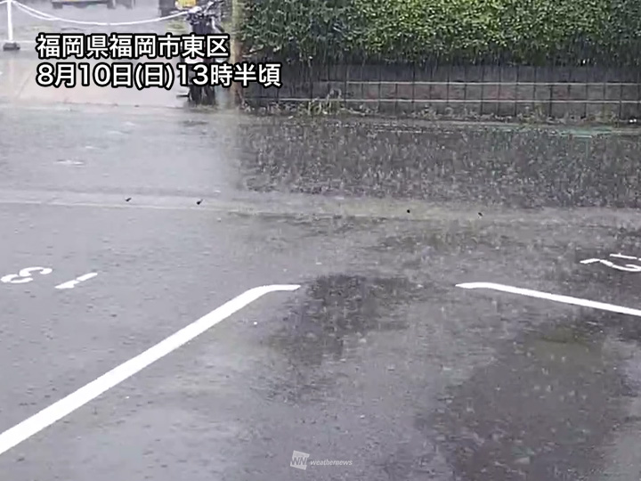 活発な雨雲がやや南に広がる 福岡市でも土砂降りの雨に