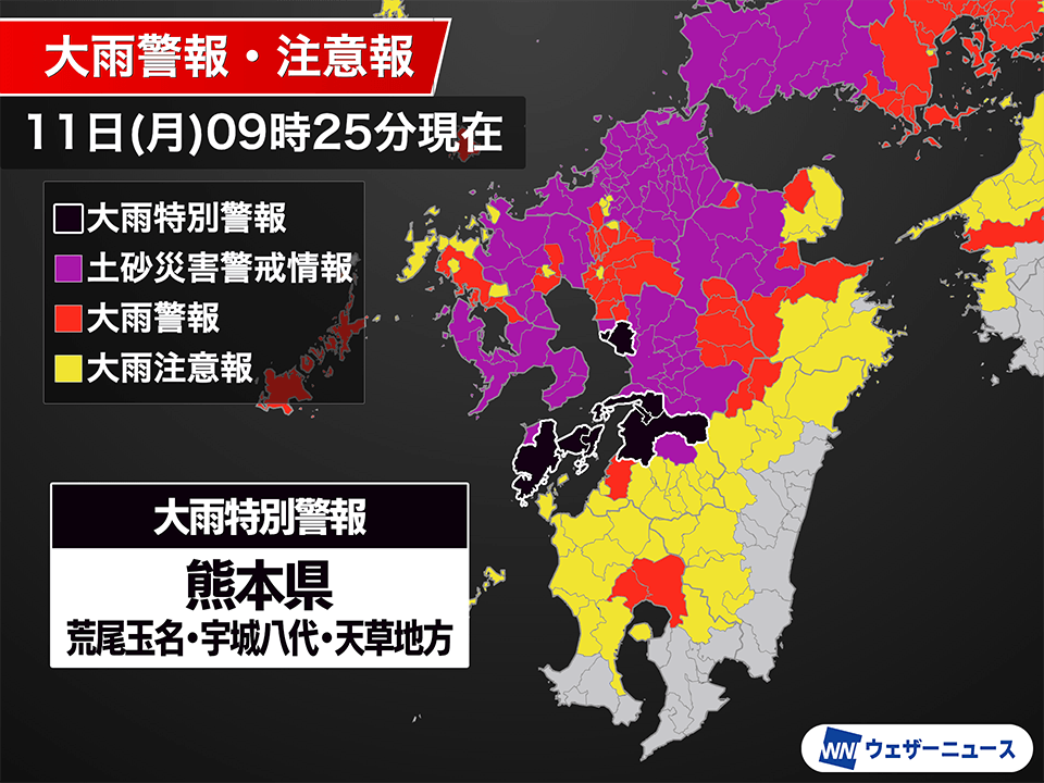 【速報】熊本県荒尾玉名・宇城八代・天草地方に大雨特別警報 命を守る行動を