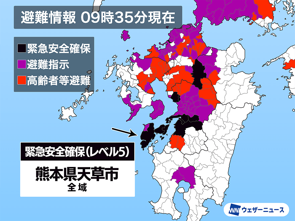 熊本県天草市の全域に「緊急安全確保」発令 警戒レベル5 命を守る行動を