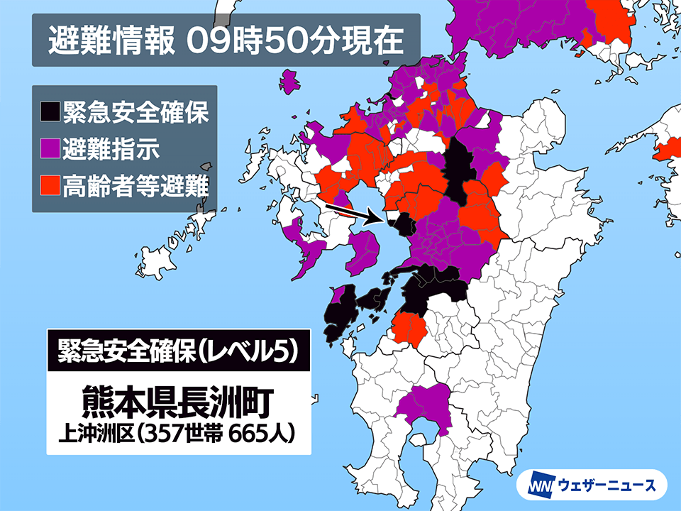 熊本県長洲町の一部に「緊急安全確保」発令 警戒レベル5 命を守る行動を