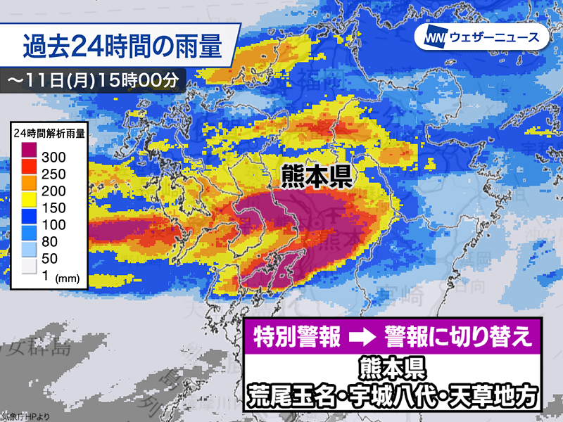 熊本県の大雨特別警報は警報に切替 引き続き土砂災害に警戒