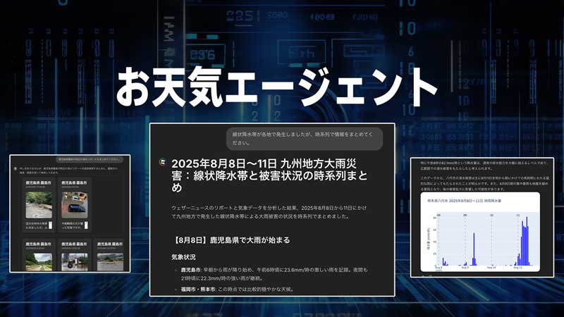 大雨発生地点の時系列での振り返りや、報告書の作成、災害リスクに備えた雨量の基準値の見直しなどにも、お役に立てることがあるかと思います。ぜひ、みなさんもお天気エージェントをお試しください。