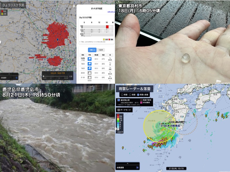 各地でゲリラ雷雨発生、記録的短時間大雨情報も