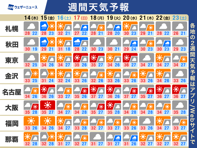 週間天気予報 お盆休みは西日本や東日本で晴れて厳しい残暑
