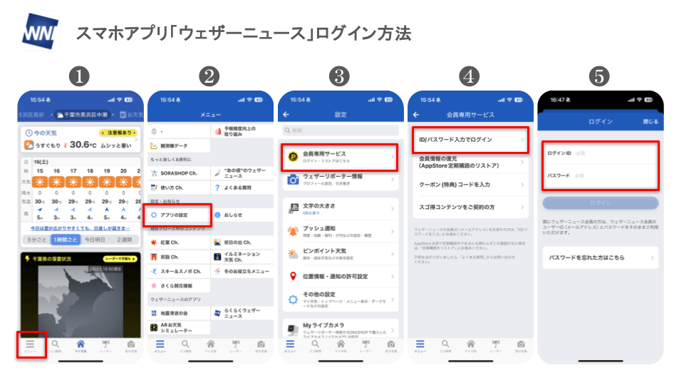 パソコン版ウェザーニュースProへのログイン方法