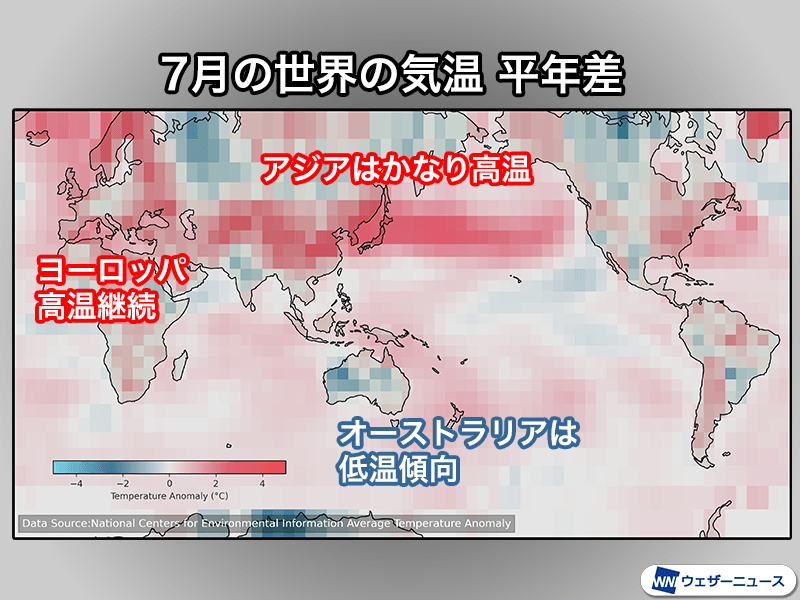 7月の世界の気温は過去3番目の高さ 日本などアジアで顕著な高温 米海洋大気庁