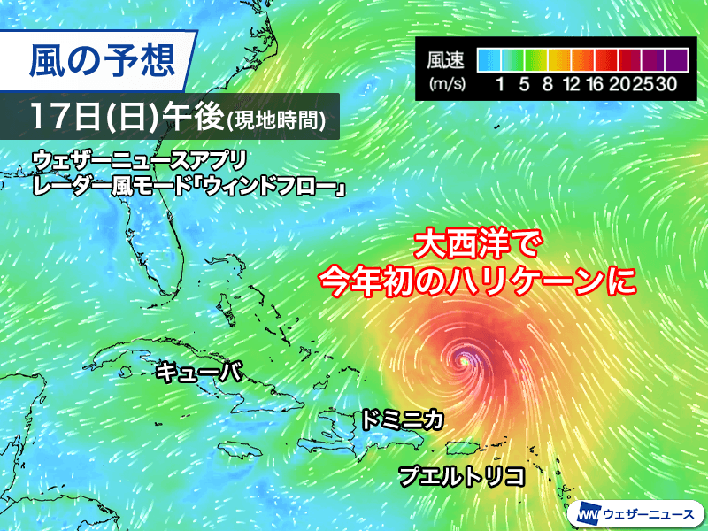 今後も発達しながら西寄りに進む見込みで、現地時間の15日(金)午後(日本時間16日朝)にはハリケーンになるとみられます。大西洋・カリブ海エリアでハリケーンが発生すれば今年初めてです。