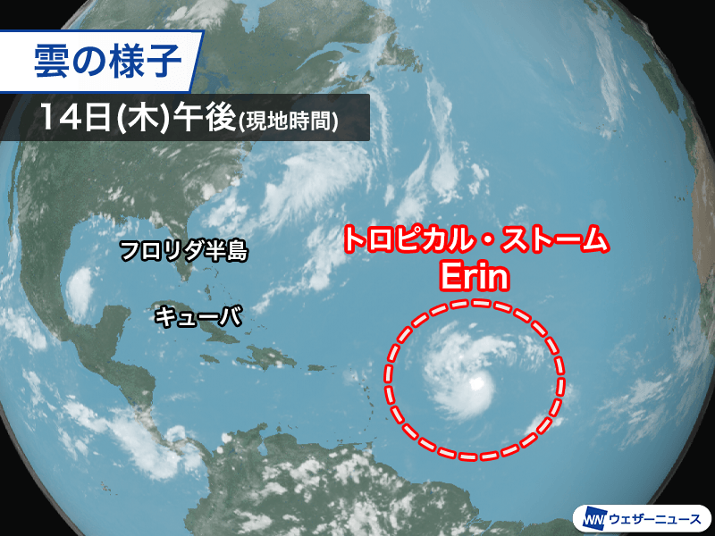 大西洋で今年初のハリケーン発生へ トロピカル・ストームErinが発達中