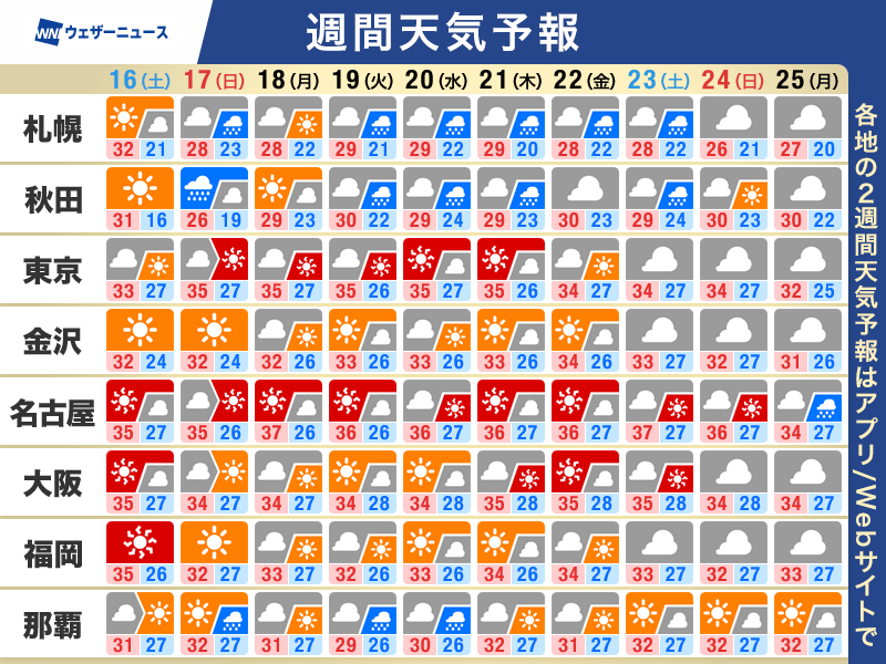 週間天気予報 来週は東京や名古屋で猛暑日が続出 北日本は雨が降りやすい