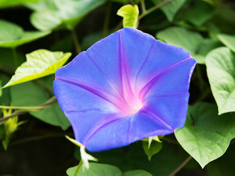 「アサガオの特徴は、その名のとおり朝に開花して、一度咲いた花は、1日でしぼんでしまうことです。多くの品種があってさまざまな色や模様の花が咲き、『日本で最も発展した園芸植物』といわれています。