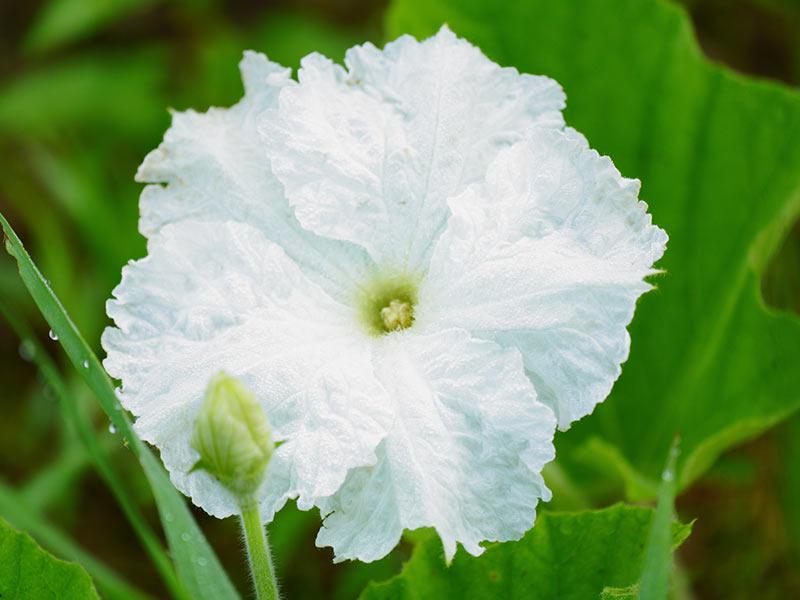 「ユウガオは蔓性(つるせい)の一年生植物です。直径5~10cmほどの白色の花を咲かせます。実は食用で、巻きずしのネタなどに使われる『かんぴょう』として加工されます。