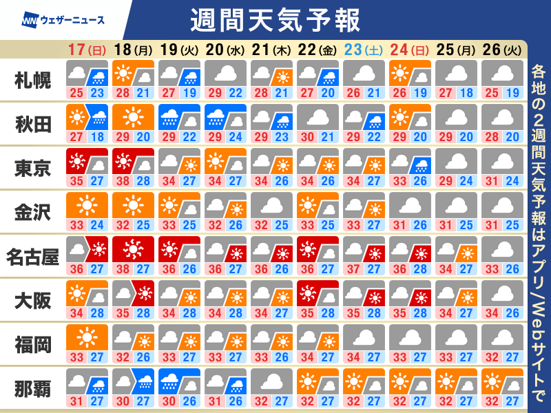 週間天気予報 暑さぶり返し猛暑日続く 平野部でも急な雷雨に注意