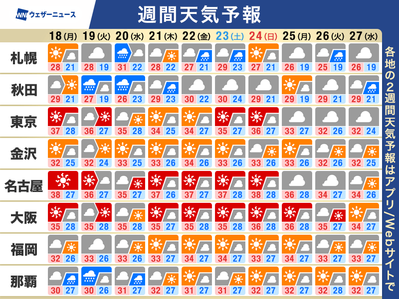 週間天気予報 猛烈な残暑が続く 晴れていてもゲリラ雷雨に注意