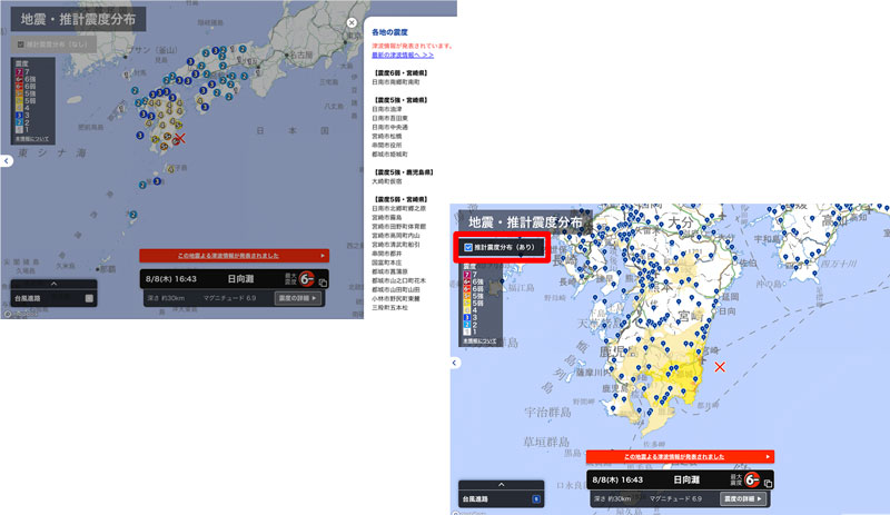 【地震情報】スマホ・PCで最新情報を確認、プッシュ通知機能も