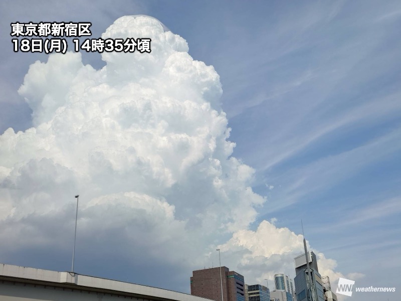 気温の上昇によって大気の状態が不安定になり、山沿いでは所々で雨雲が発生・発達しています。西日本では落雷も頻発していて、局地的に土砂降りの雷雨になっている状況です。