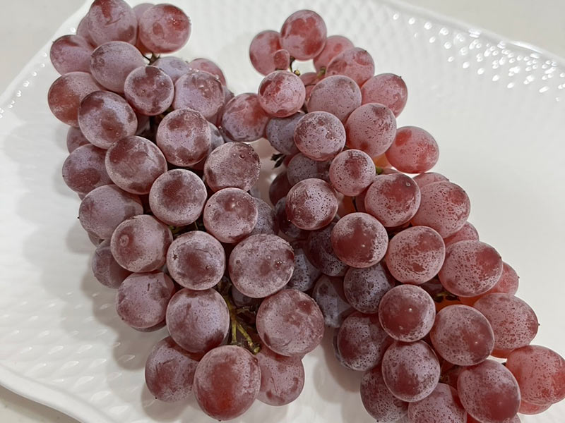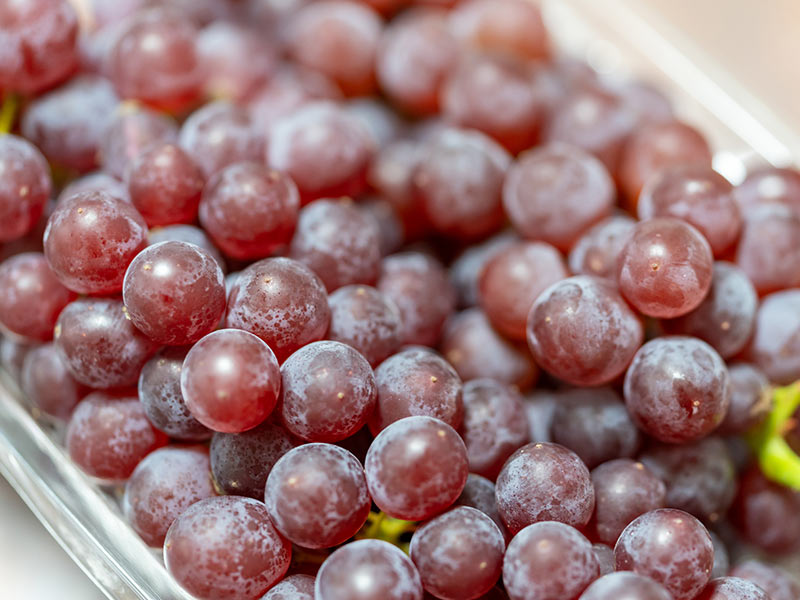 ぶどうには実にブルーム(果粉)と呼ばれる白い粉のようなものがついています。これはぶどう自身が出す物質で、鮮度を保つために重要な役割を担っています。洗うとブルームが落ちてしまい、鮮度が落ちるのを早める結果になってしまいます。