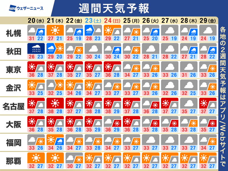 週間天気予報 西日本や東日本は“猛残暑” 北日本は雨の強まりに注意