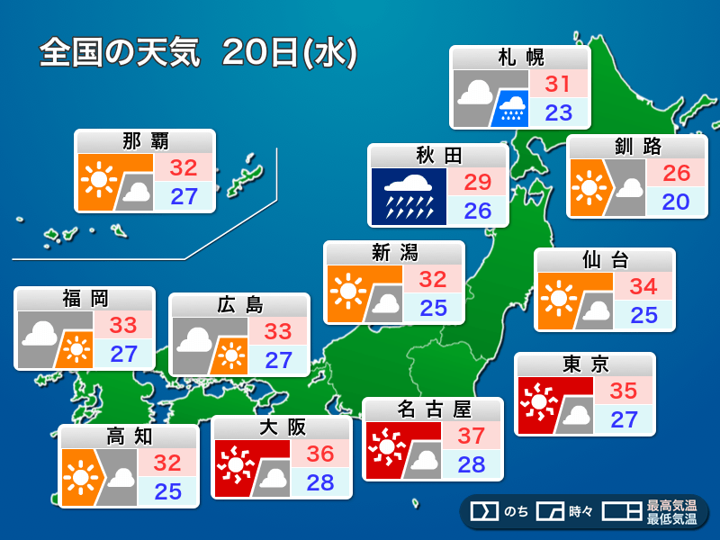 深刻な残暑 北日本は局地的に大雨のおそれ