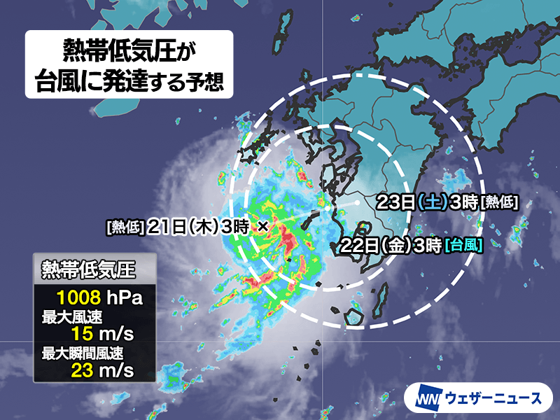 熱帯低気圧が台風に発達予想 九州は今日〜明日にかけて大雨のおそれ