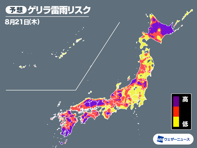 今日8月21日(木)の天気予報 東北北部は天気回復へ 西、東日本は終わりの見えぬ残暑