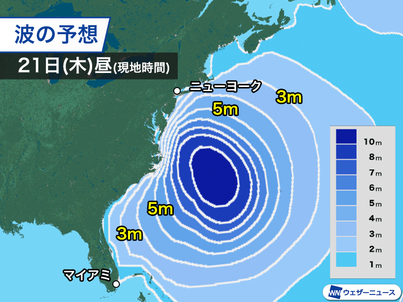 ハリケーンが勢力を維持したまま北上していることで、アメリカからカナダにかけての東海岸では広い範囲で高波が予想されます。