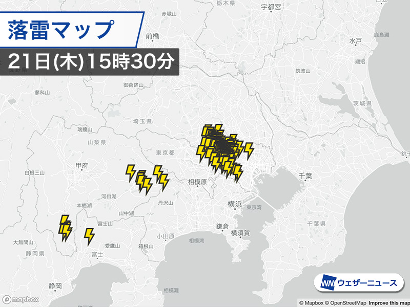 関東南部で激しい雷雨に…