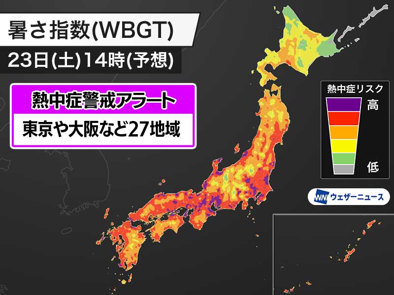 明日8月23日(土)の熱中症警戒アラート 東京や大阪など27地域に発表