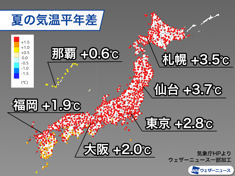 » 8月の日本の平均気温は過去2番目の高さ 夏の気温は記録を大幅更新