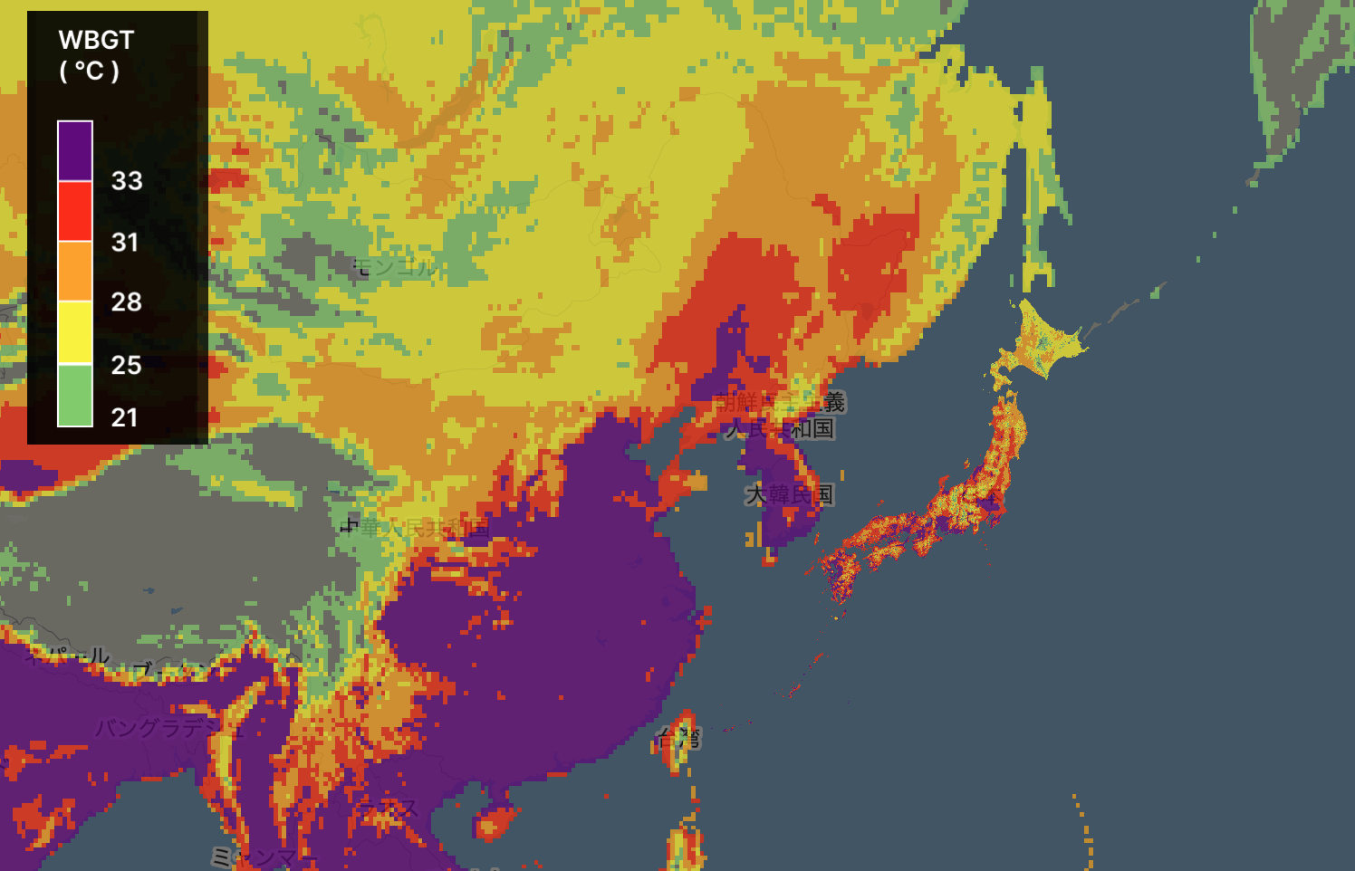 標準設定では、WBGT基準値を28℃/厳重警戒で分析しておりますが、その他の基準値での分析も可能です。例えば建設現場など、拠点での身体作業区分に対応するWBGT基準値での分析も可能となりますので、ぜひ弊社担当までお問い合わせください。