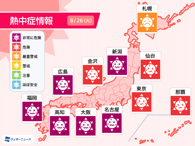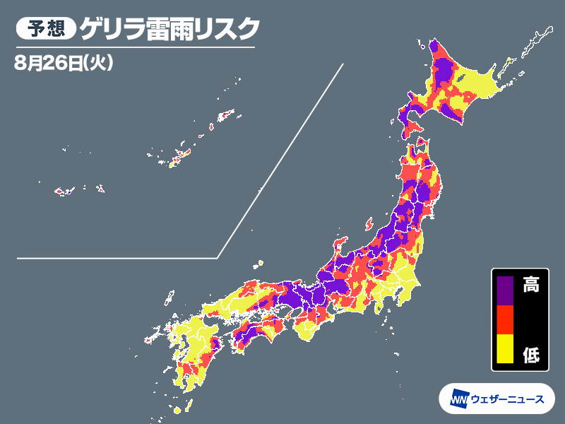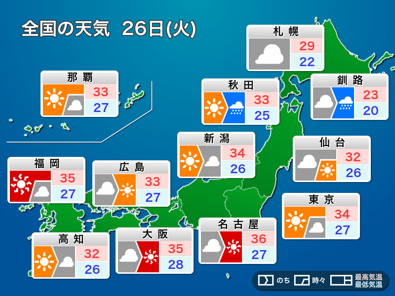 明日8月26日(火)の天気予報 西日本、東日本は暑さと雷雨注意 北海道は局地的な大雨に