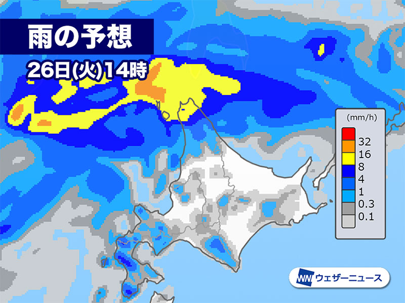 北海道は前線の影響で道北を中心に雨が降りやすくなります。特に宗谷地方では断続的に強雨となり、大雨となるおそれがあるため警戒が必要です。