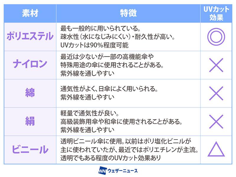 「確かに、UVカットの加工は時間の経過や使い方などによって当初の効果は徐々に失われていくと言われています。そこで、UVカットは加工だけに頼るのではなく、日傘の素材そのものに注目することで、より効果的で長持ちするUV対策が可能になります」(石垣先生)